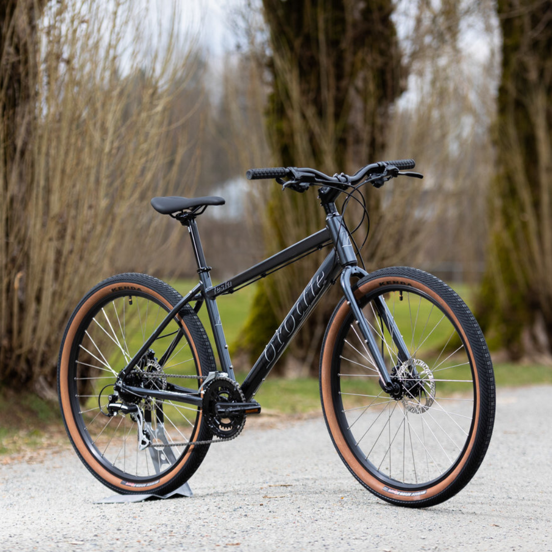 The new larger volume tires help smooth out rougher bike lanes, and help guard against flats. The Tesla alloy frame is ready to bolt on fenders for all weather riding and racks to carry your gear or hook up some panniers.