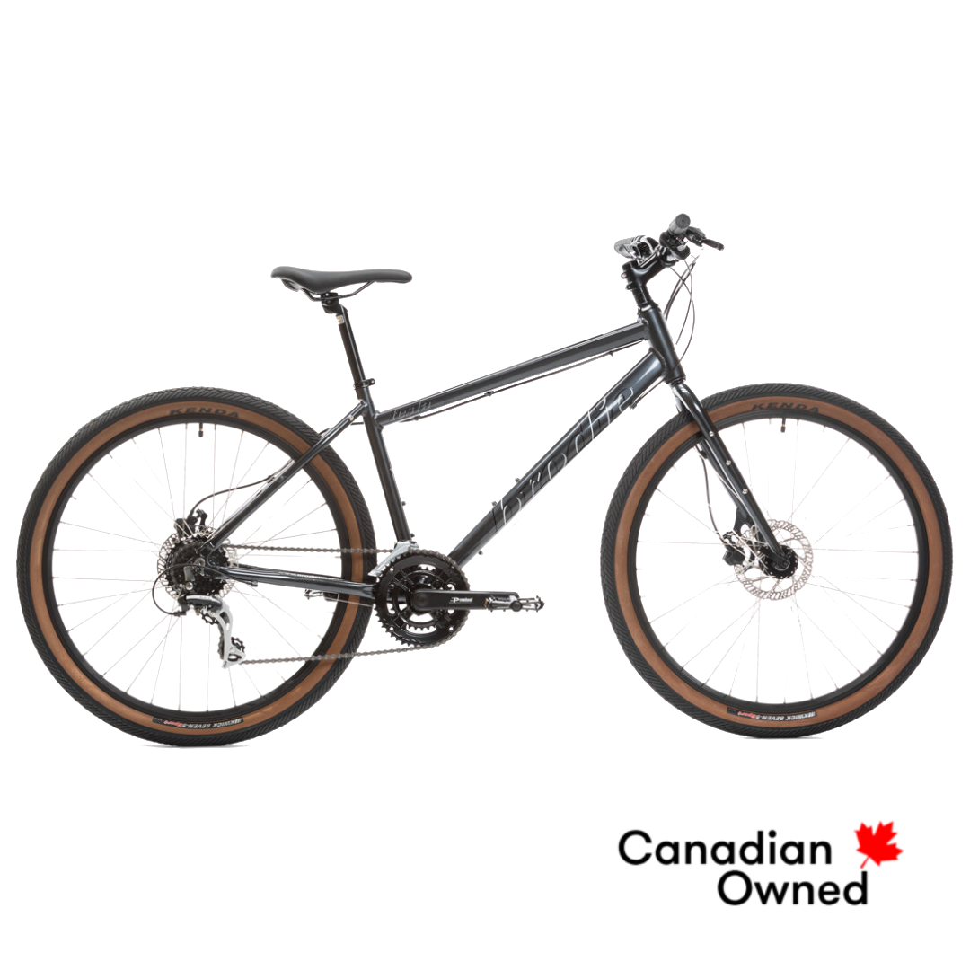 The ultra reliable and durable Shimano 2 X 8 Drivetrain gives you a huge range of gearing with the 46/30 Tooth front chainwheel paired with a 11-34 Tooth rear cassette gives you a better than 1 : 1 gear ratio. This gives you a complete range of speeds you might need as well as great climbing gears.