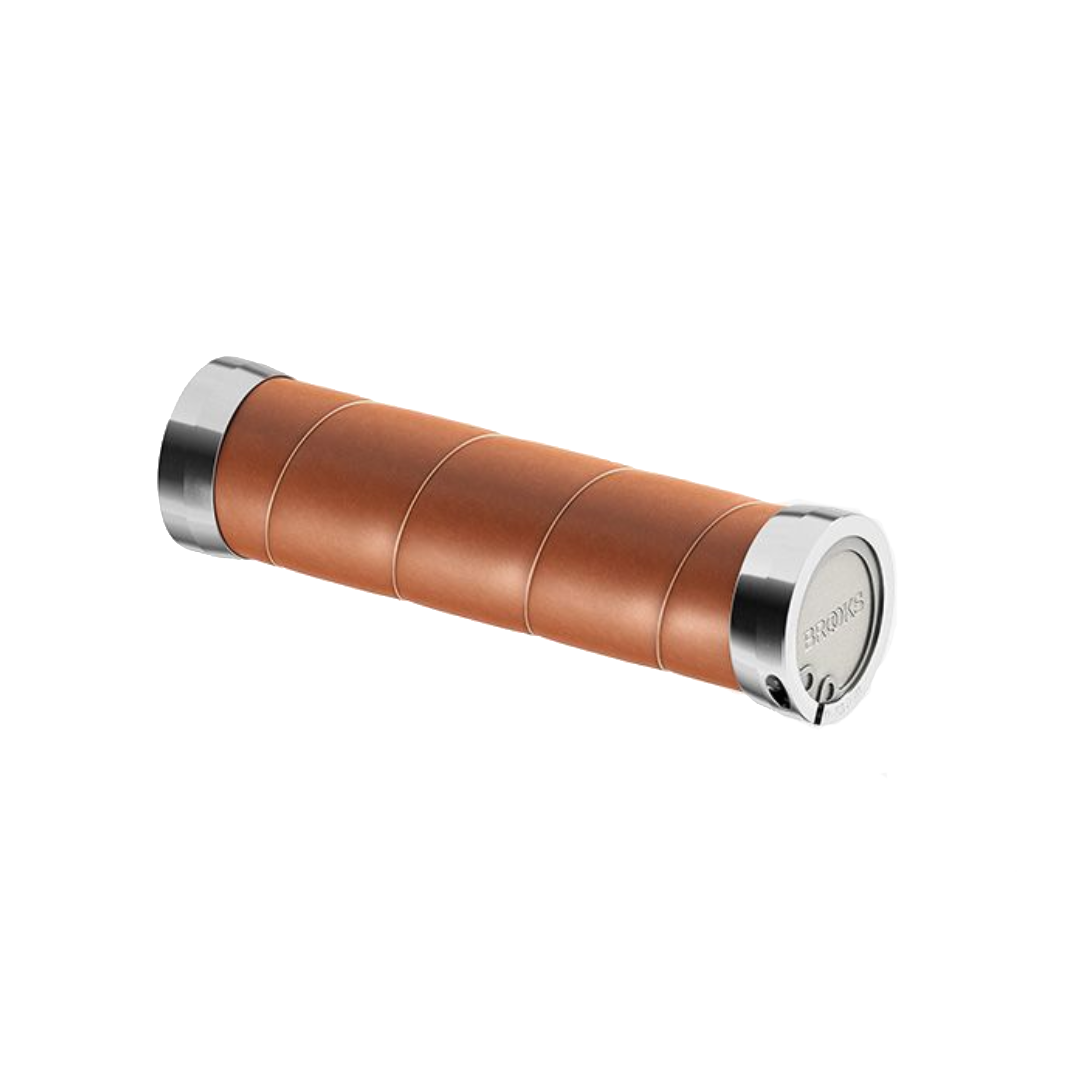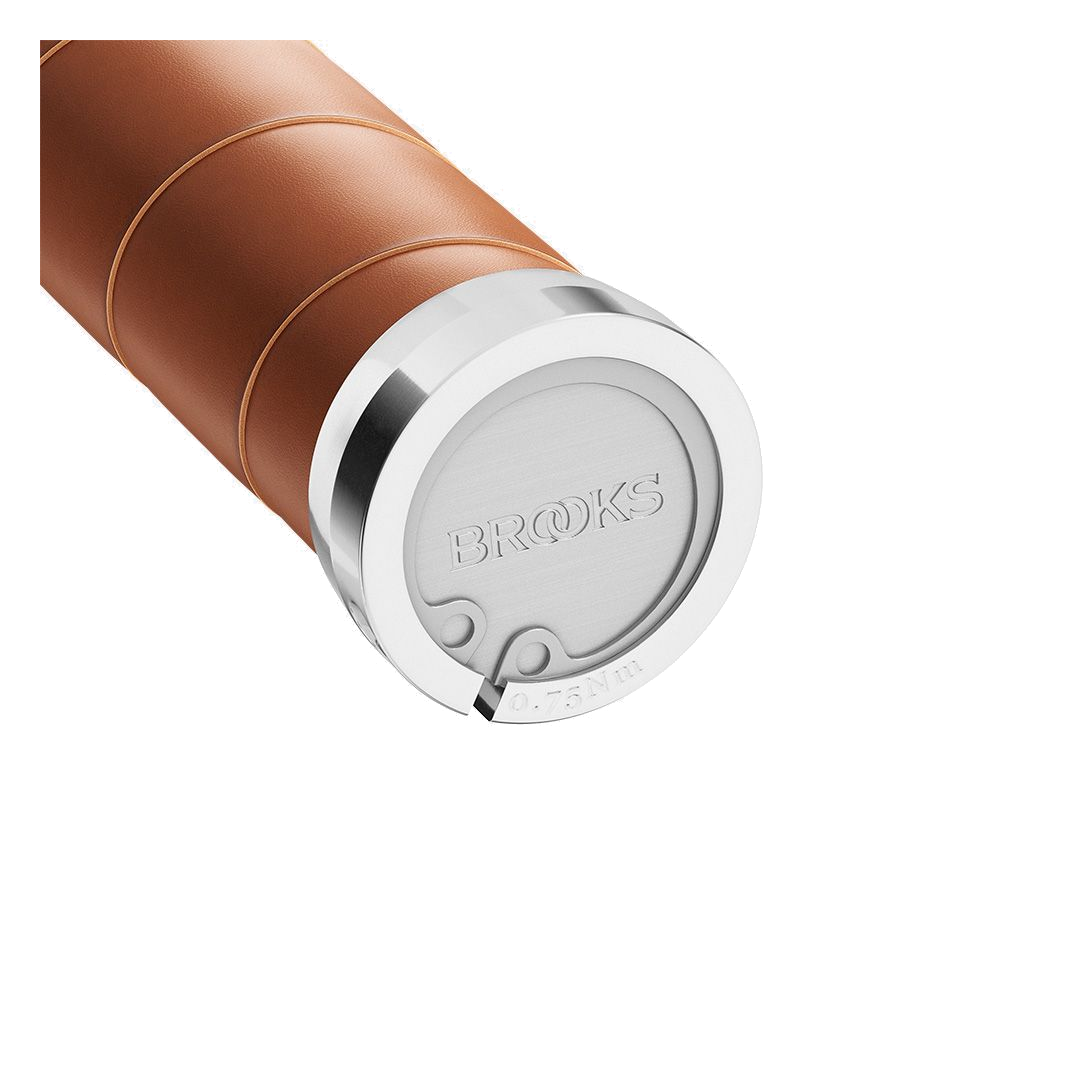 Create an accountBrooks Slender Leather Grips feature vegetable tanned leather tape, a naturally timeless material for long lasting durability and great looks, perfect for straight bar bicycles. The design incorporates an aluminium shell around which the bar tape is wrapped in the manner of traditional handlebar tape. The leather is then held in place by aluminium and steel clamps which can be removed in the event that the tape requires replacement.