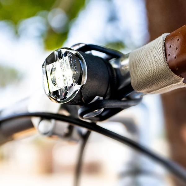 The Femto's versatile rubber mounting strap quickly and securely mounts to a variety of handlebar sizes and a waterproof, threaded Composite Matrix cover keeps the USB-C charging port sealed and free from dirt and debris.