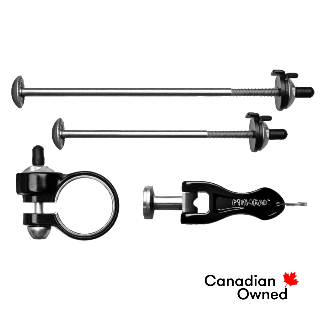 Pinhead quick release wheel and seatpost locks protect the front wheel, rear wheel, and seatpost. Once installed, the locks remain permanently on your bicycle, even when you ride. When you need to remove your wheels for servicing, your Pinhead key lets you do this quickly and easily. Pinhead locks cannot be removed with tools such as hammers, pliers, picks, universal socket tools, grinders or bolt cutters. Our convex disc technology prevents your wheels and seatpost from being removed by bike thieves.
